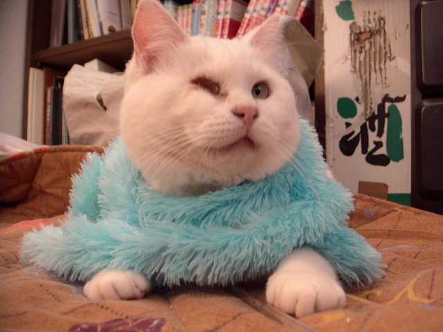 保護宅に欠かせない乳母猫。人みしりゼロ。成猫仔猫の区別無く、どんな猫の心のドアも開けてしまうファンタジスタ。片目のハンデをものともせず、自分の猫生を切り開いた尊敬すべき猫。