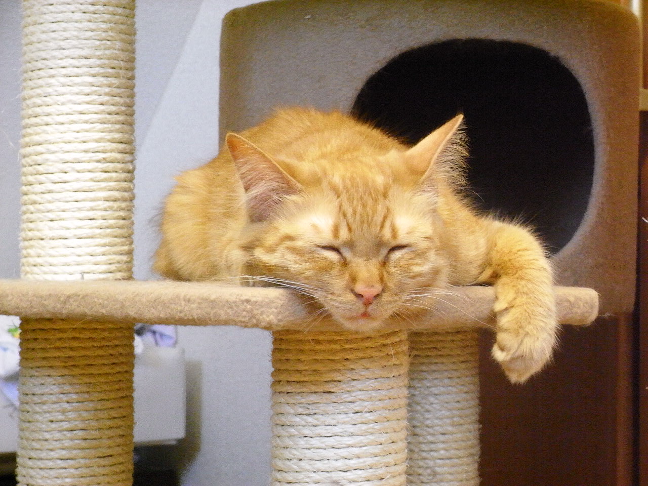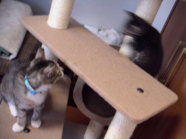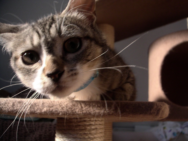 ↑他の猫達と接触したくないちゃーたんは、常にキャットタワーの上