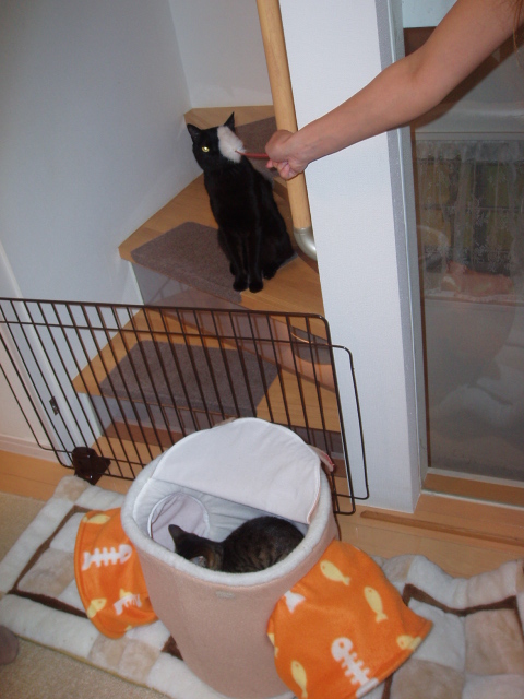 お気に入りは、真っ白い猫じゃらし、大喜びで遊んでます。