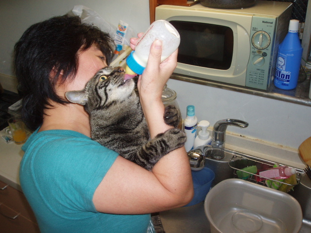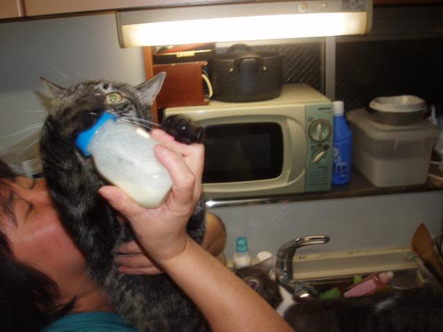 「ミルクだぁぁぁ!」と、襲い掛かる人工保育猫「がっちゃん」