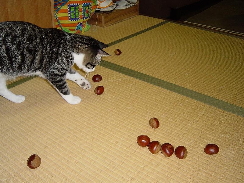 シュシュの方が向こう見ずな遊び方で、いろんなところにぶつかりながら遊んでいました。撮影不可能なスピードと高さ。仔猫ってスゴイ。