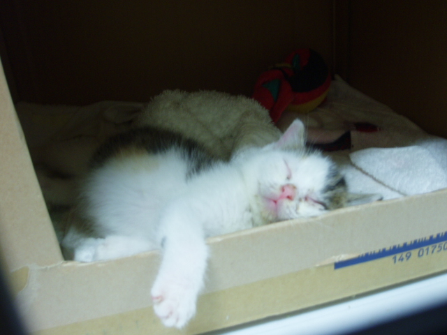 11日先行保護 ⇒ ムク宅(ムク姉、仔猫飼育OK)にて看病して貰う